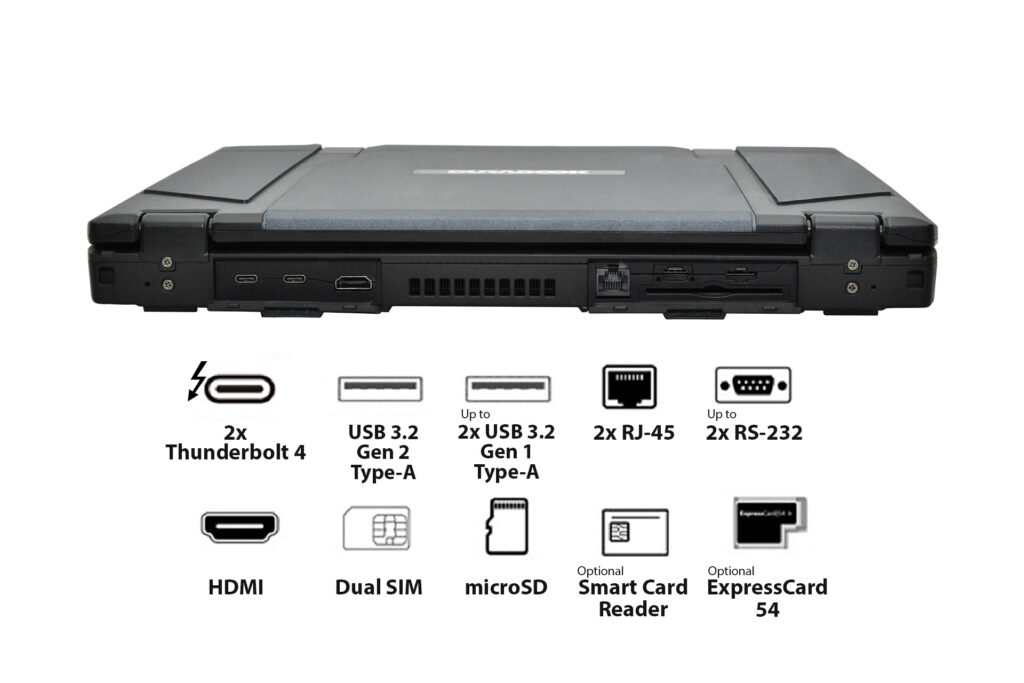 Leading the industry in connectivity, it features dual Thunderbolt™ 4 ports, dual RJ-45 LAN ports, dual SIM support (Nano SIM and eSIM), up to three USB 3.2 ports, HDMI 2.1, and a microSD card slot. For specialized field requirements, the S14I can also be configured with additional options such as up to two RS-232 serial ports, a smart card reader, and ExpressCard 54—ensuring it adapts to every workflow.